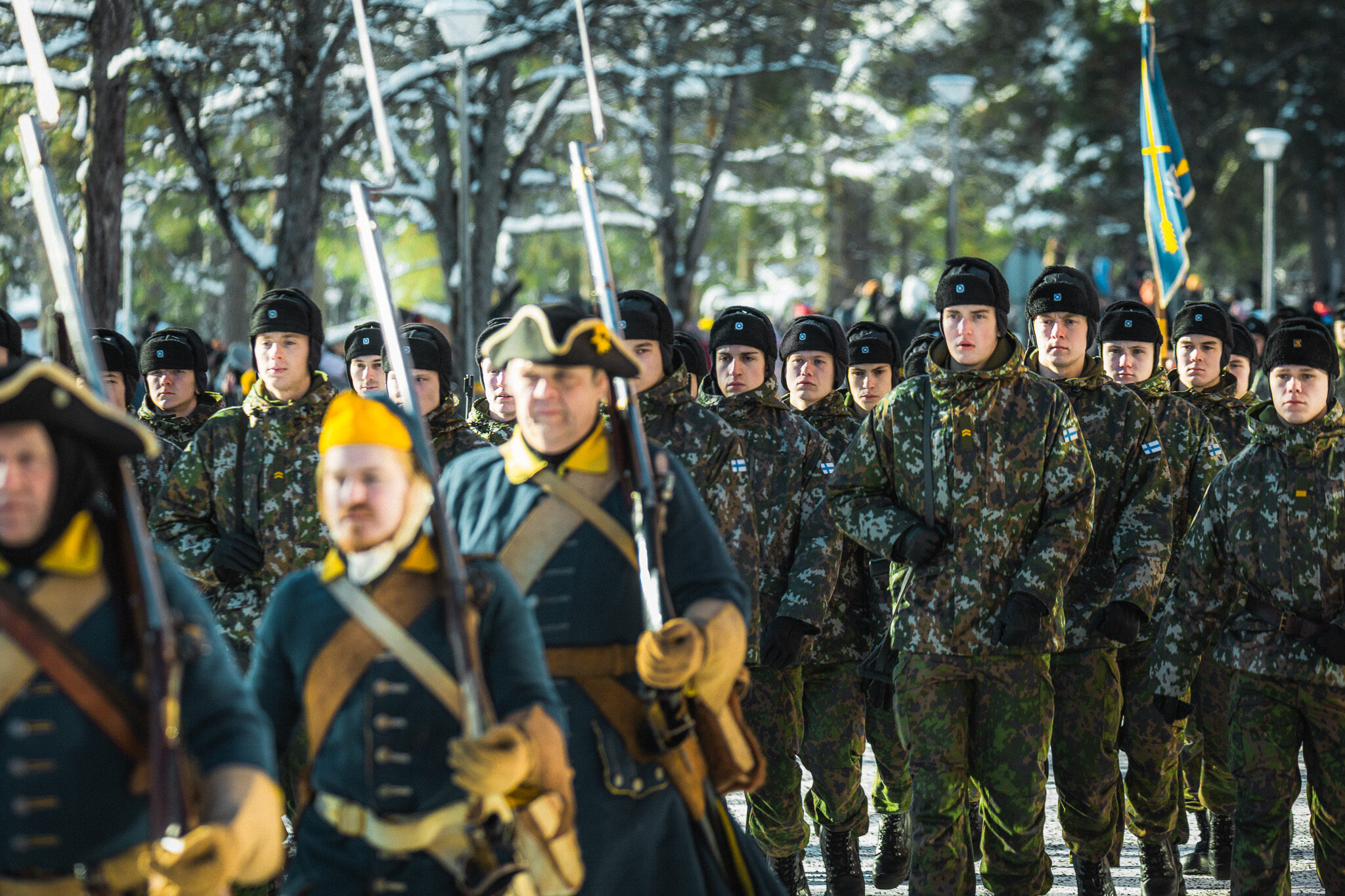 Vasa kustjägarbataljon marscherade in under ledning av bataljonskommendören kommendör Simon Källman och Ekenäs kustbataljon under ledning av bataljonskommendören kommendör Saima Ratasvuori. När trupperna var uppställda granskades de först av respektive bataljonskommendörer, varefter de anmäldes till paradkommendören, Nylands brigads stabschef kommendör Janne Jortama.