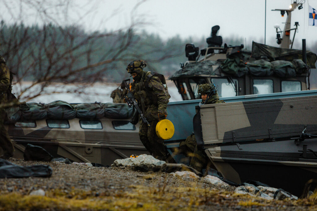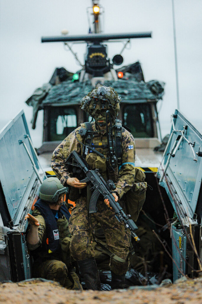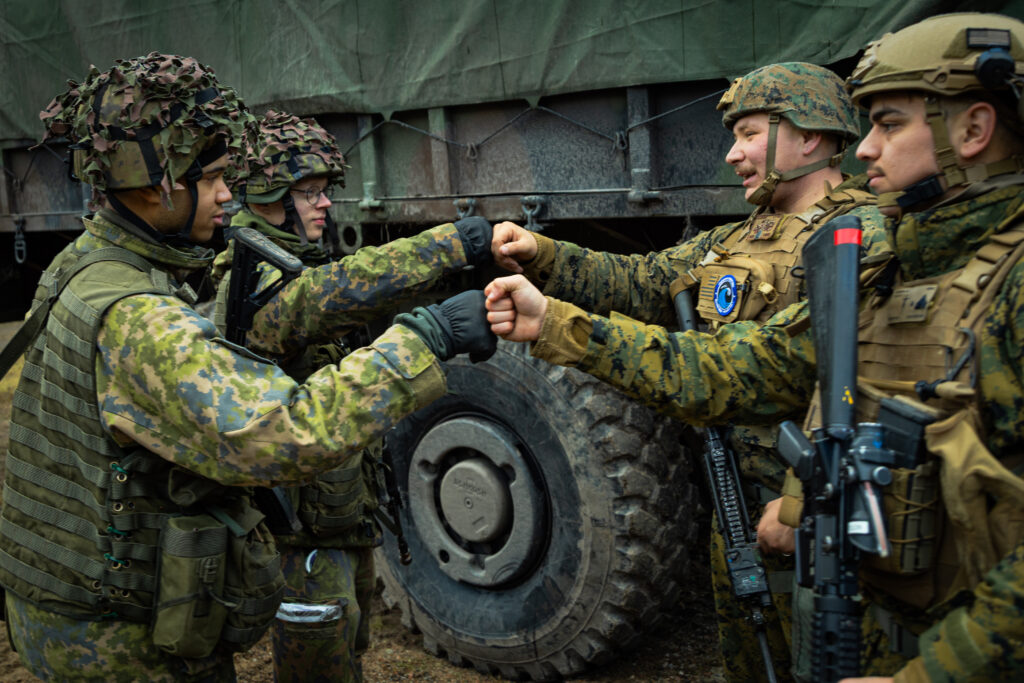 I Freezing Winds 25 deltog trupper och fartyg från sammanlagt elva Natoländer, bland annat Belgien, Danmark, Tyskland, Litauen och USA. Särskilt de amerikanska trupperna från USA:s marinkår USMC har blivit en bekant syn både på övningar och i vardagen på brigaden, då 350 marinkårssoldater just nu är placerade på Nylands brigad. Det är inte bara på brigaden som man kan stöta på de amerikanska vapenbröderna, utan även under övningen i Korpo. Som här, när amerikanska soldater och beväringar från Stabs- och signalkompaniet möttes i terrängen.