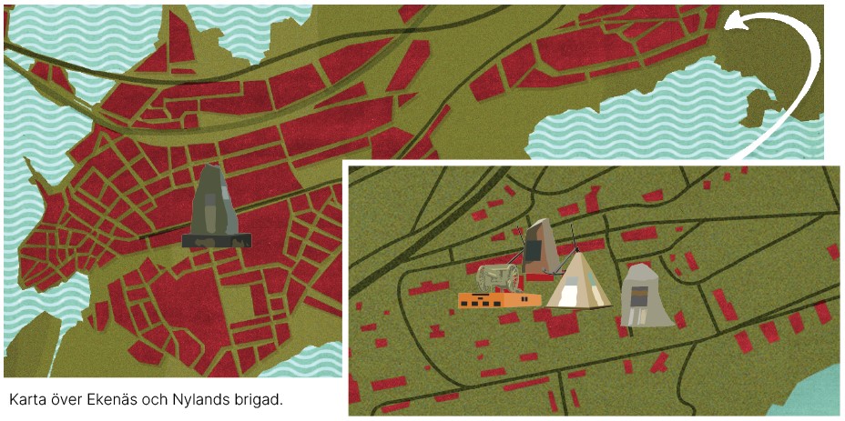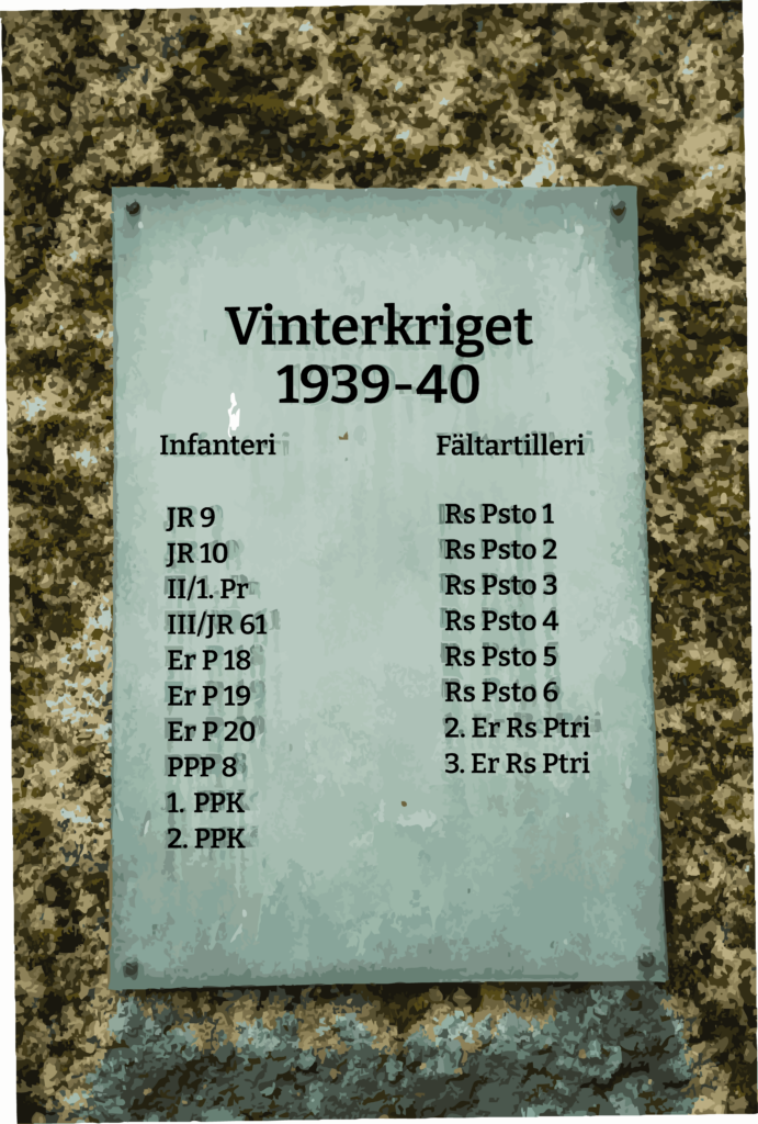 Informationen är hämtad från Nylands brigads historik “400 år i torrt och vått” och webbplatsen “veteraanienperinto.fi”. Ett stort tack riktas även till kaptenlöjtnant Mikael Isberg som bidragit med information kring minnesmärket.
